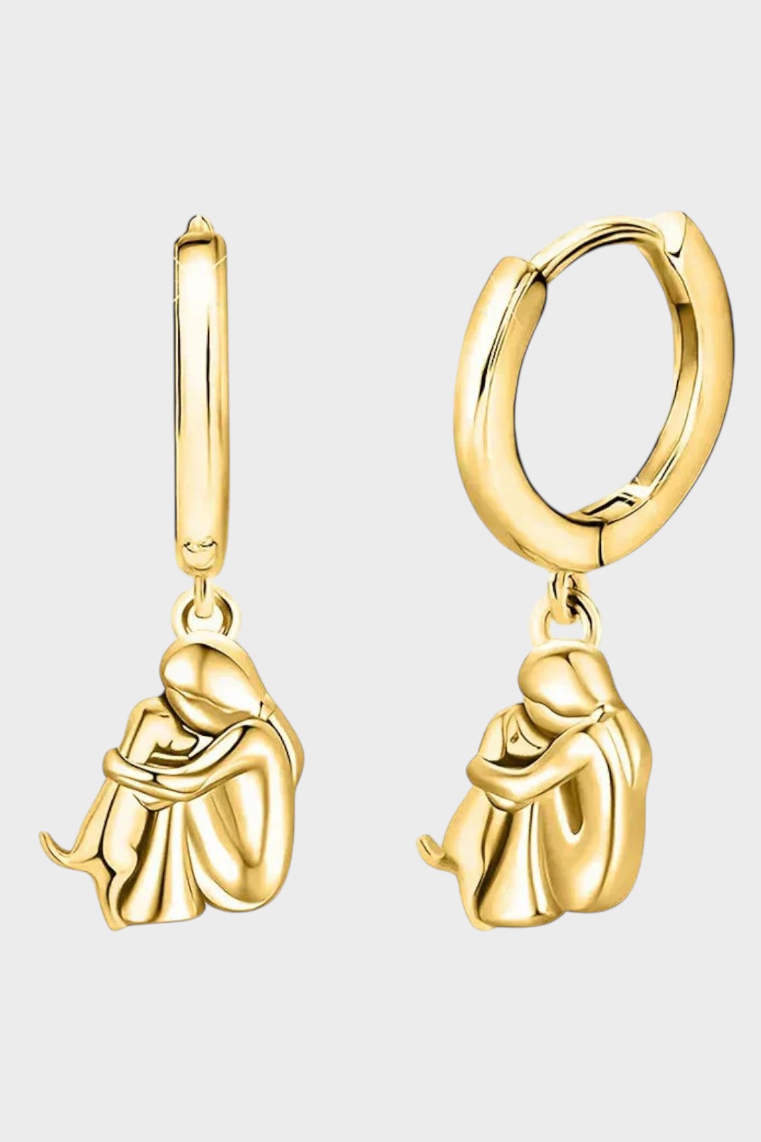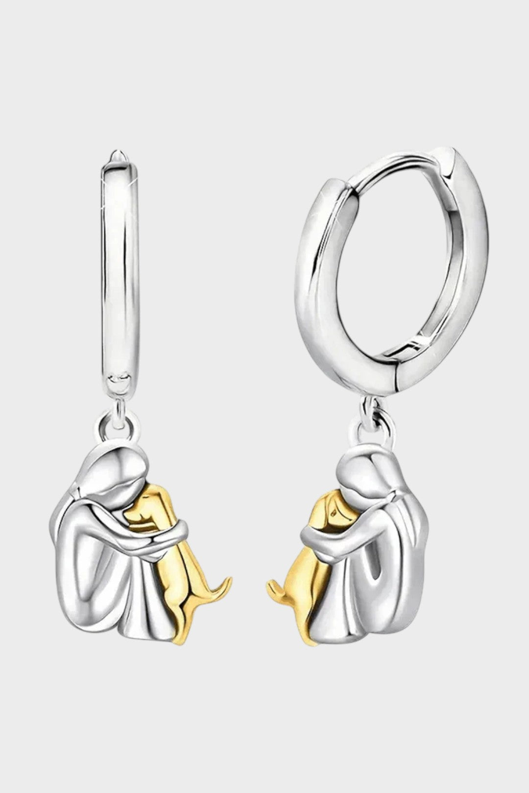 Acești cercei delicați, cu un design unic reprezentând o fetiță care își îmbrățișează câinele, simbolizează dragostea pură și prietenia necondiționată. Realizați în nuanțe elegante de argint și auriu, sunt perfecți pentru cei care își iubesc prietenii blănoși.