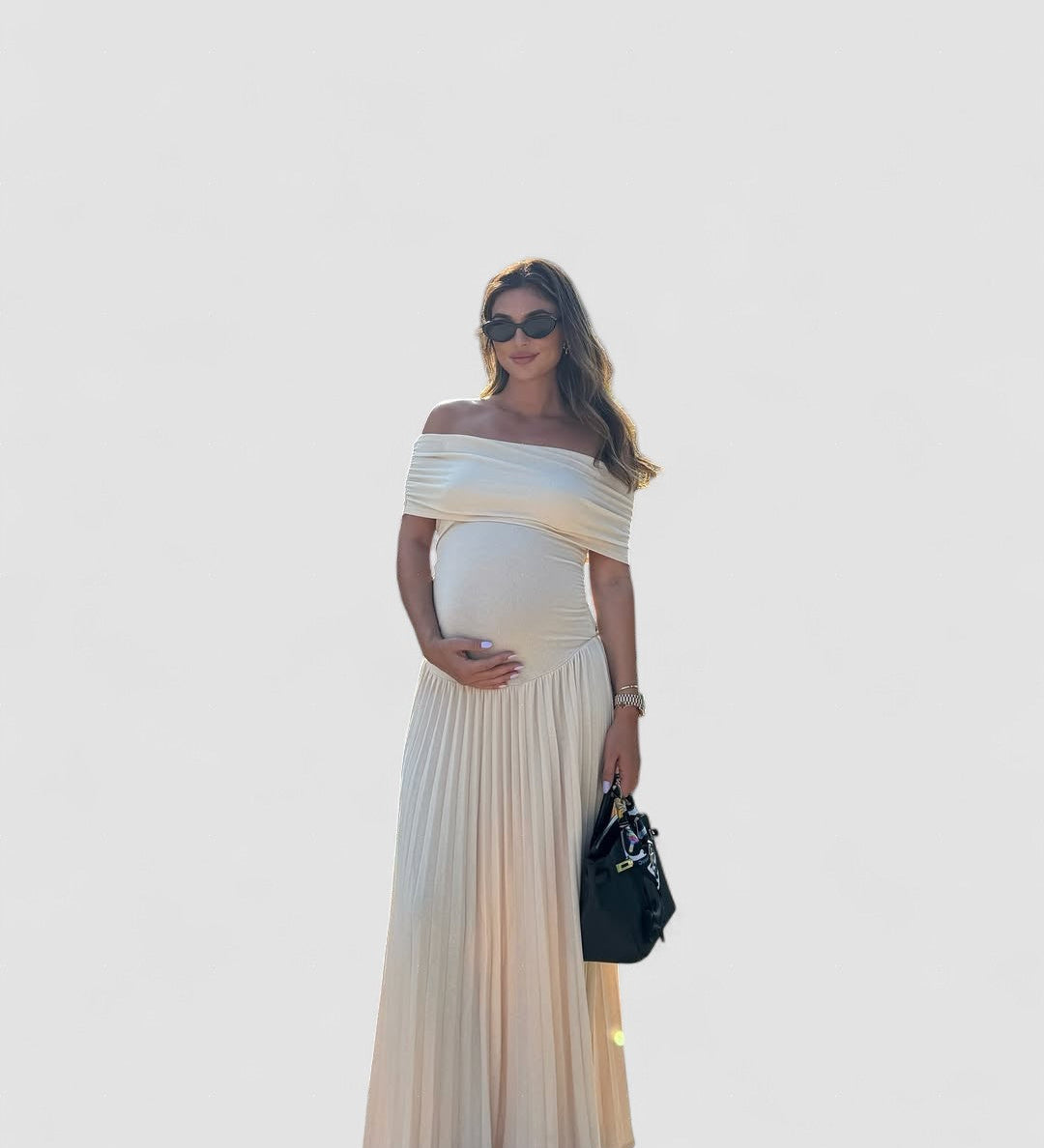 Amara – Rochie Maxi de Maternitate Elegantă cu Falduri