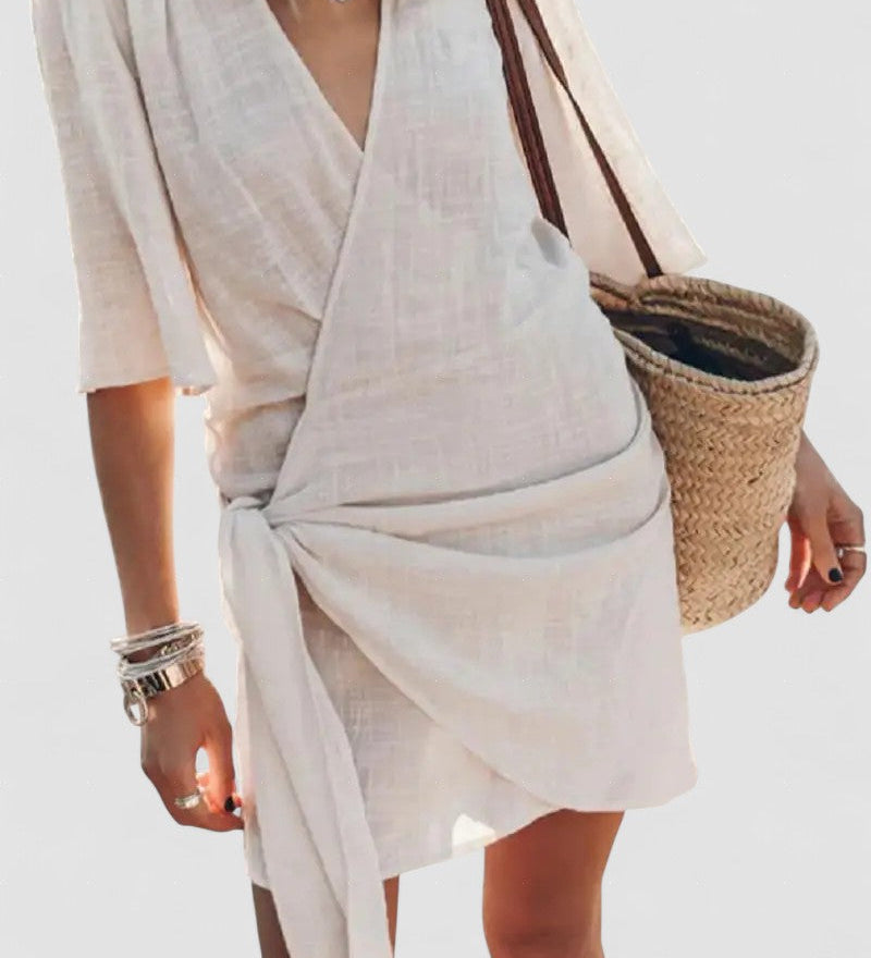 Angelin – Rochie de Damă din In cu Decolteu în V Elegantă de Vară