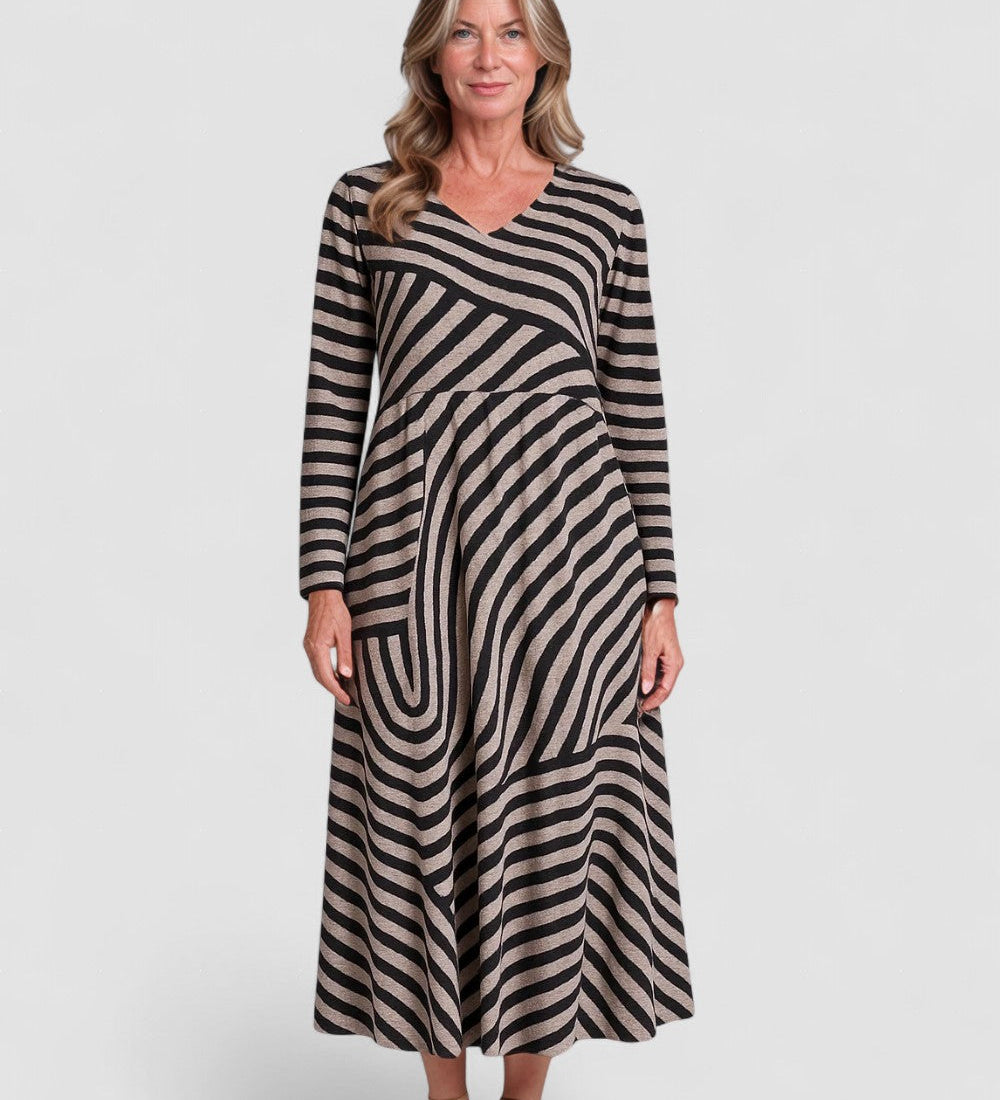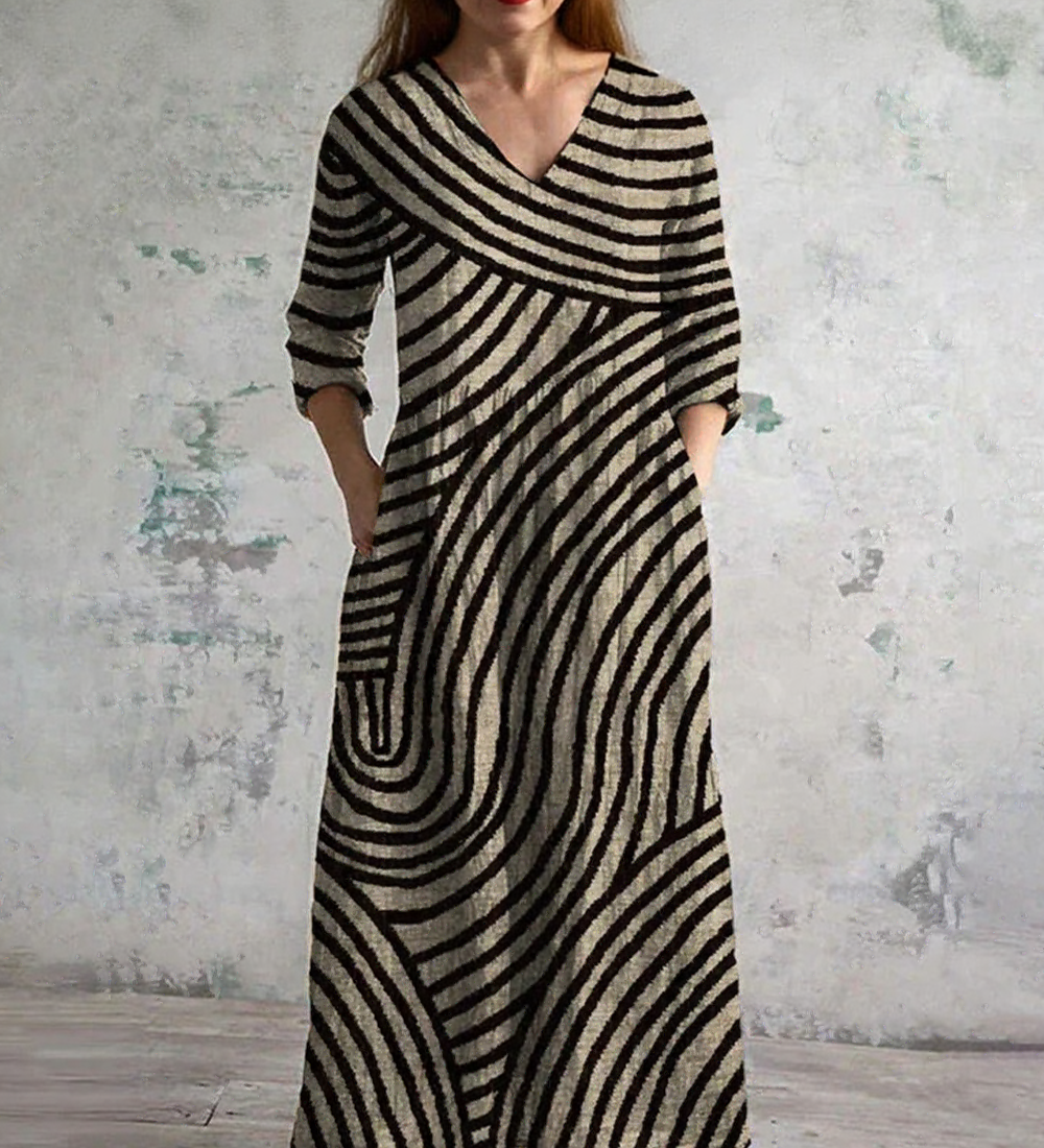 Belinda™ | Rochie maxi cu dungi și decolteu în formă de V