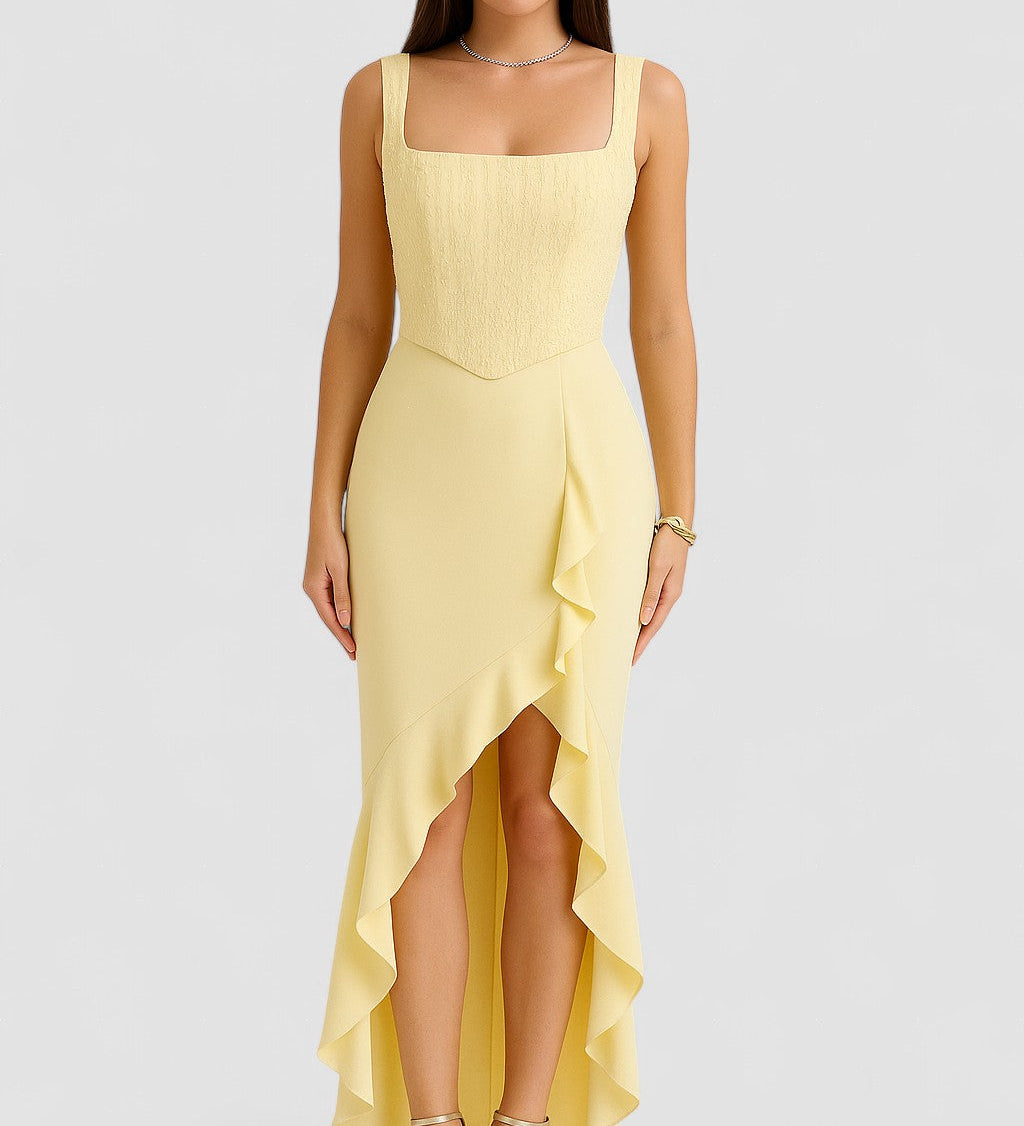 Bella – Rochie Midi de Damă din Satin cu Corset și Volane