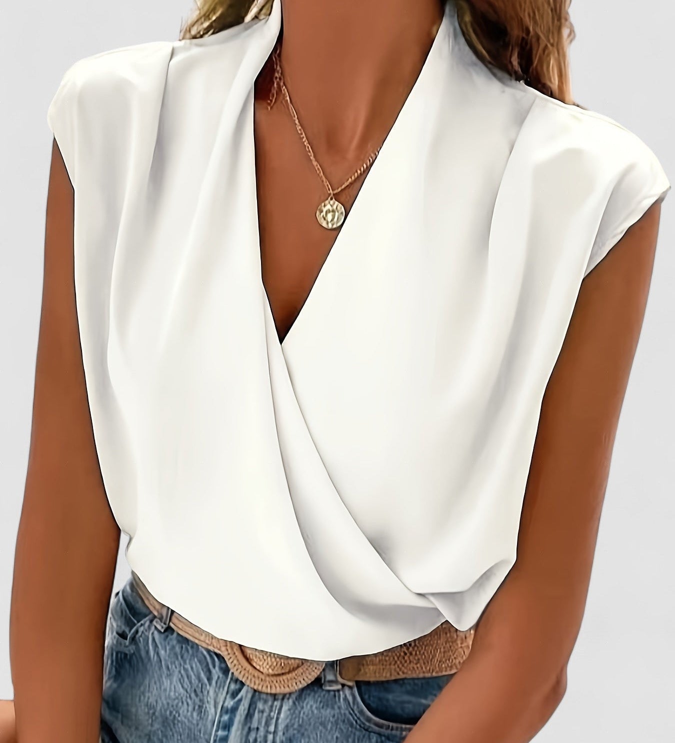Sophy – Bluză de Damă Elegantă din Satin cu Decolteu Drapat