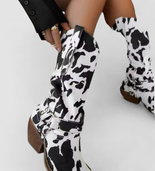 Vale – Botine Cowboy din Piele Animal Print pentru Damă