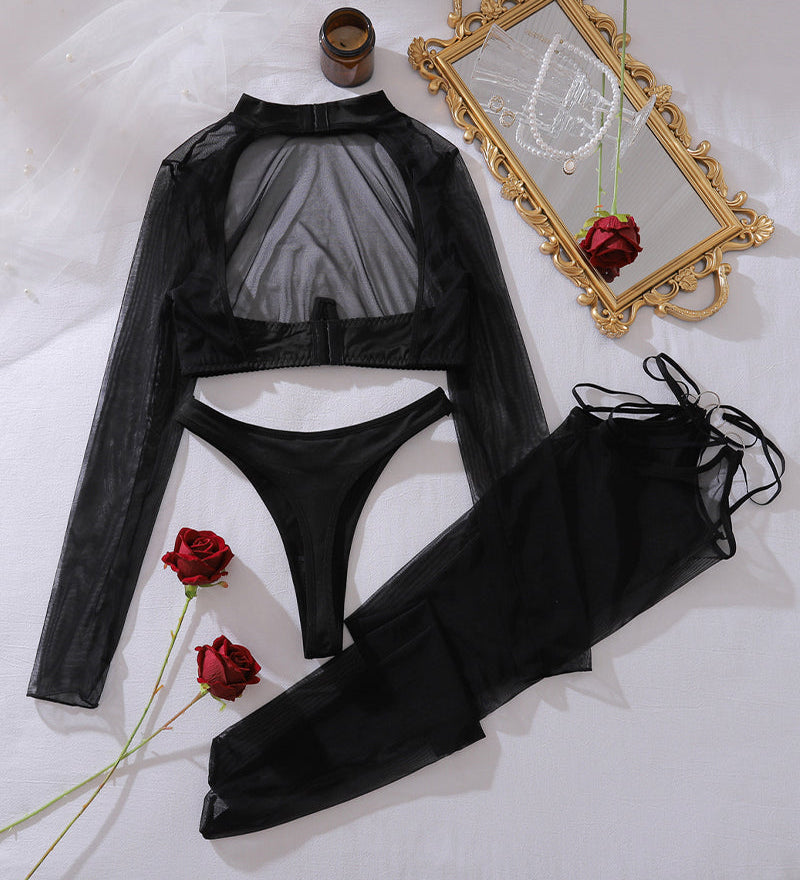 Eline™ | Set de Lenjerie din Mesh Transparent 4 Piese cu Sutien & Funda