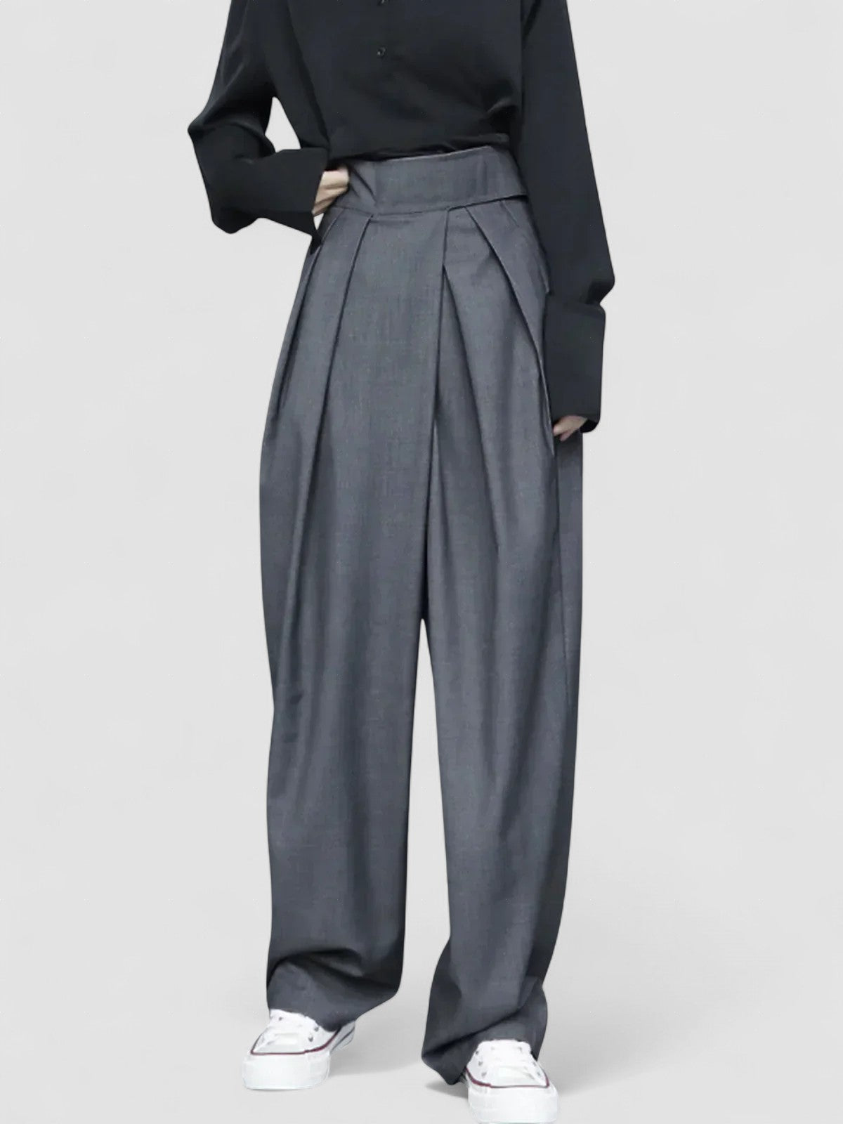Design: Pantaloni moderni cu picior larg, având un detaliu unic de închidere cu arici, o talie înaltă și o siluetă elegantă, structurată. Designul contemporan adaugă o notă îndrăzneață, dar rafinată, oricărei ținute.