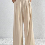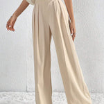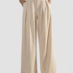 Design: Pantaloni eleganți cu picioare largi, talie înaltă, pliseuri moi și o siluetă fluidă. Designul minimalist oferă atât confort, cât și sofisticare pentru un stil versatil.