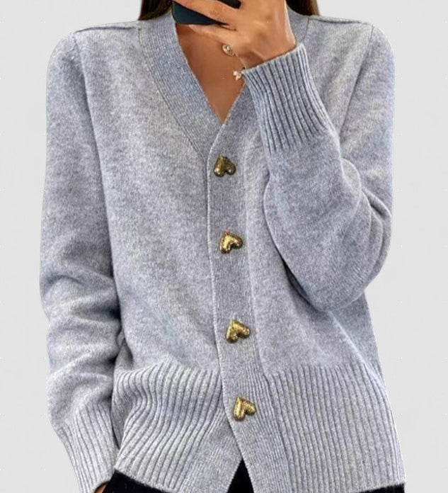 ADELE | Pulover Moale cu Nasturi în Formă de Inimă