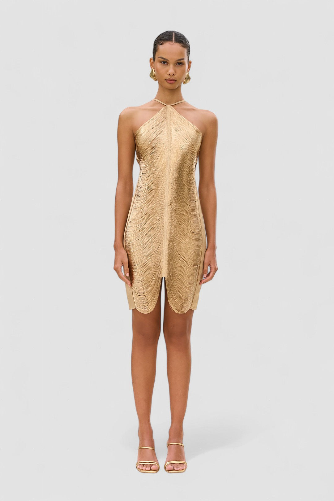 Sahara – Rochie Mini Metallic Sculpt pentru Damă Elegantă