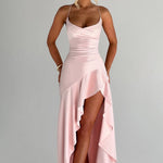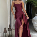 Seraphine – Rochie Maxi Damă Elegantă cu Tiv High-Low și Fanta
