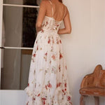 Rochia maxi Yana cu volane și imprimeu floral aduce un echilibru rafinat între eleganță clasică și stil modern. Croiala fluidă, decolteul în formă de inimă și imprimeul floral delicat oferă un aer feminin și sofisticat, potrivit pentru evenimente elegante, petreceri în aer liber, vacanțe sau seri speciale.
