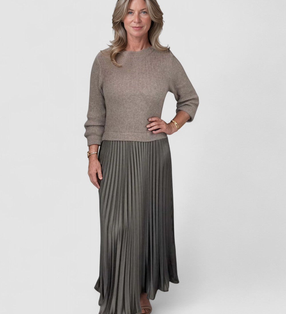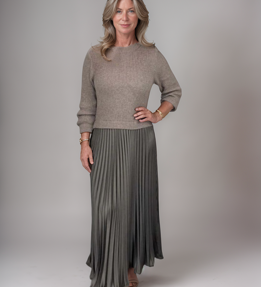 Clara – Set de Damă Elegant cu Pulover și Fustă Plisată Midi