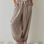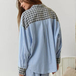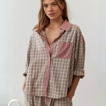 Model clasic cu carouri – Dispune de un tricou cu carouri atemporal și pantaloni asortați, care nu se vor demoda niciodată.
