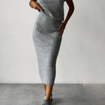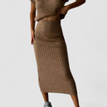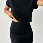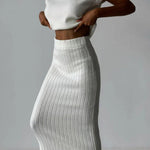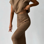 Set Asamblat: Top Tricotat Gros și Fustă Midi Tricotată cu Talie Înaltă