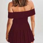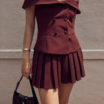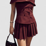 Set de top cu blazer cu umeri goi și fustă plisată