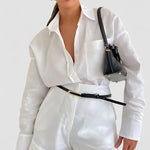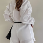 Design: Un set relaxat format din două piese, având o cămașă cu nasturi și un guler structurat, asociată cu șorturi asortate cu talie înaltă. Designul fără efort combină confortul cu o eleganță subtilă.