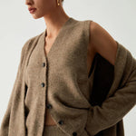 Design: Un set elegant din trei piese care include un cardigan lung și fluid, un top interior ajustat și pantaloni drepți cu talie înaltă. Designul coordonat oferă un aspect rafinat, dar fără efort.