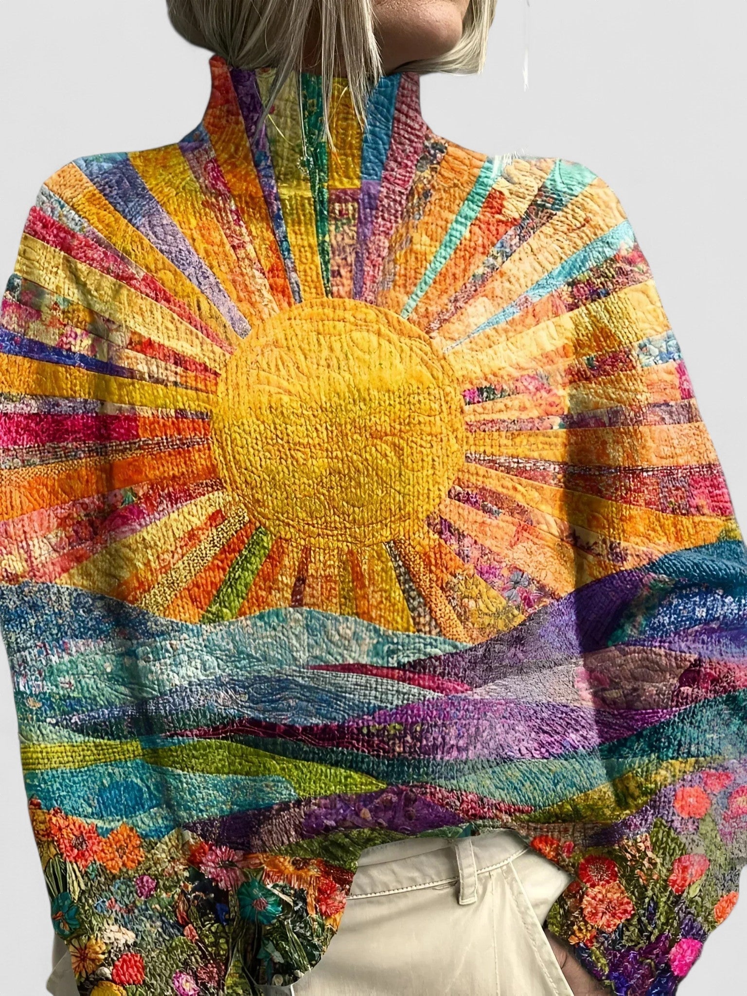 Simone - Pulover Colorat și Vesel cu Guler Înalt