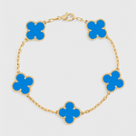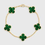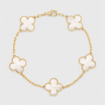 Brățara Sofia emană delicatețe și rafinament prin designul său placat cu aur, decorat cu simboluri clasice de trifoi. Fie purtată individual, fie în combinație cu alte bijuterii, adaugă o notă sofisticată și luminoasă oricărei ținute — de la casual la elegant.